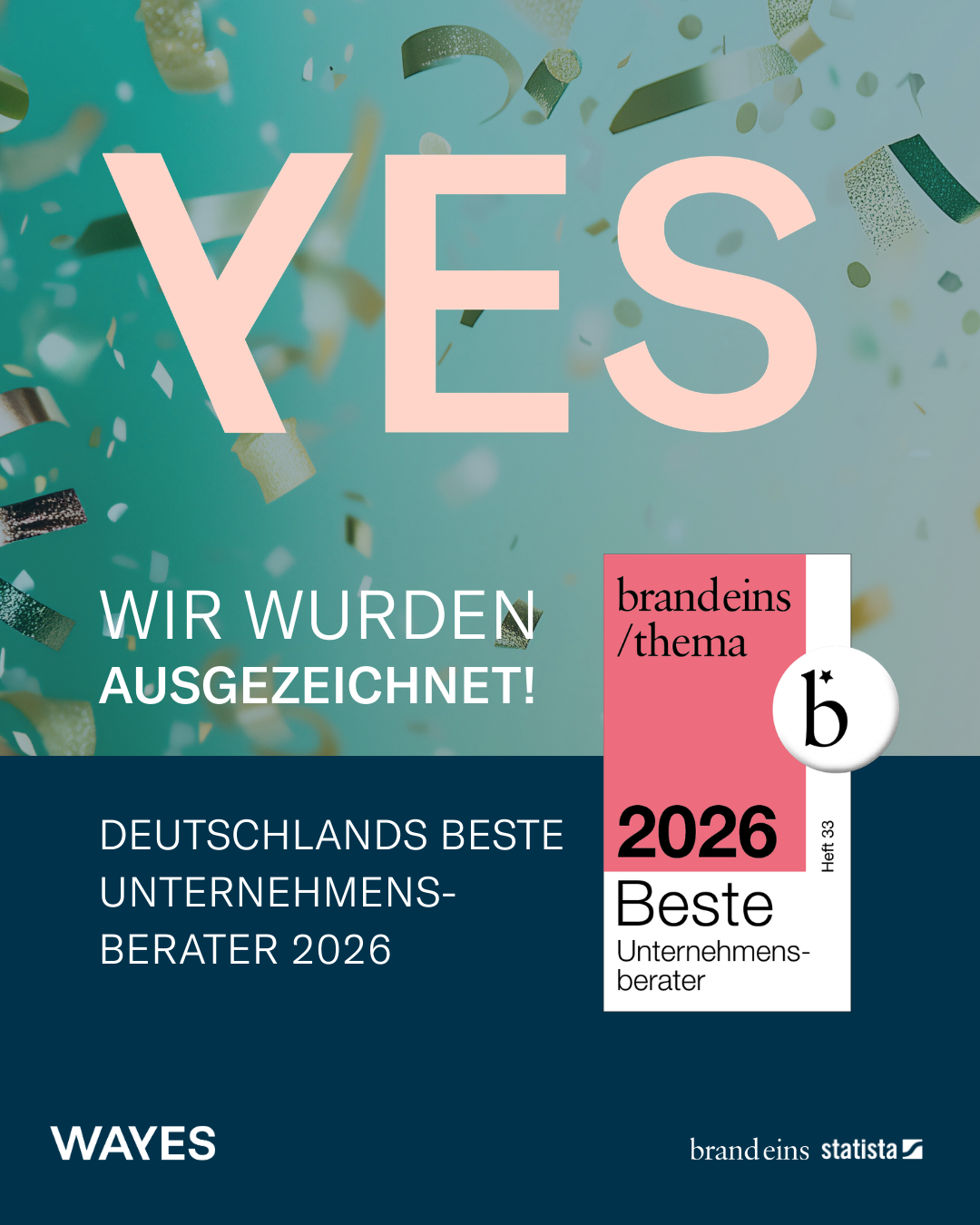 Wir freuen uns sehr über eine besondere Auszeichnung: WAYES gehört laut der aktuellen Studie von brand eins und Statista zu den Besten Unternehmensberatern 2026.